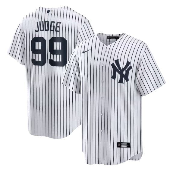 Represent your favorite team in style with the Adult Aaron Judge New York Yankees Nike White Home Replica Player Jersey. Boasting a pinstripe design, this jersey features the name and number of star player Aaron Judge. Made by Nike, this jersey offers both comfort and durability for any game day.