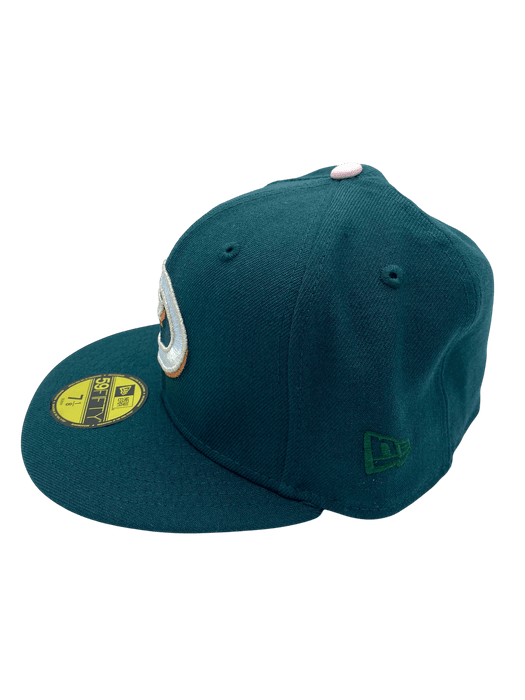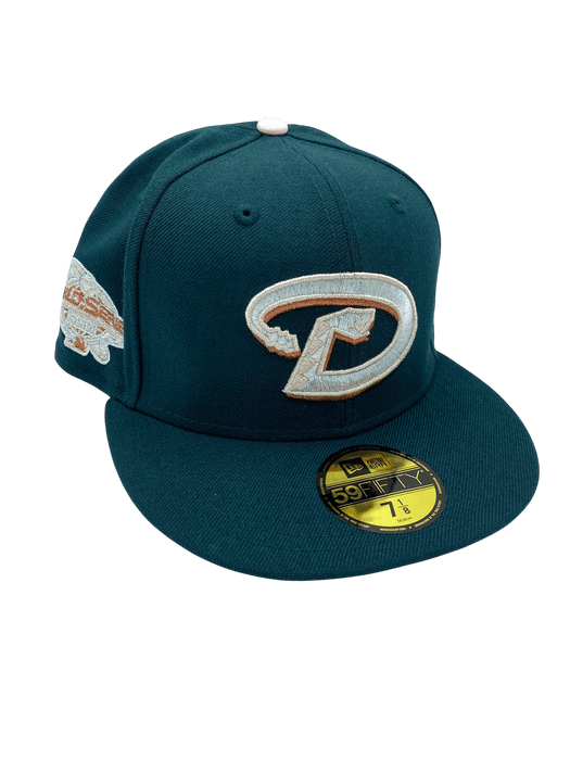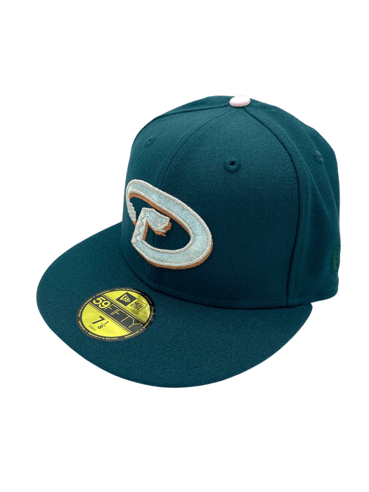Represent your Arizona Dbacks with this exclusive drop. This New Era Men's 59FIFTY fitted hat a must have. Features green crown, green bill, embroidered logos and pink undervisor. Also has embroidered side patch of 2001 World Series title. Add this sweet piece to your collection today.