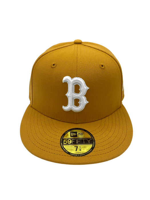 Represent your Boston Red Sox in style with this New Era Tan and White 59FIFTY fitted hat. The all white logo pops on the all over tan hat. Simple. Classic. A hat that is stylish with anything.