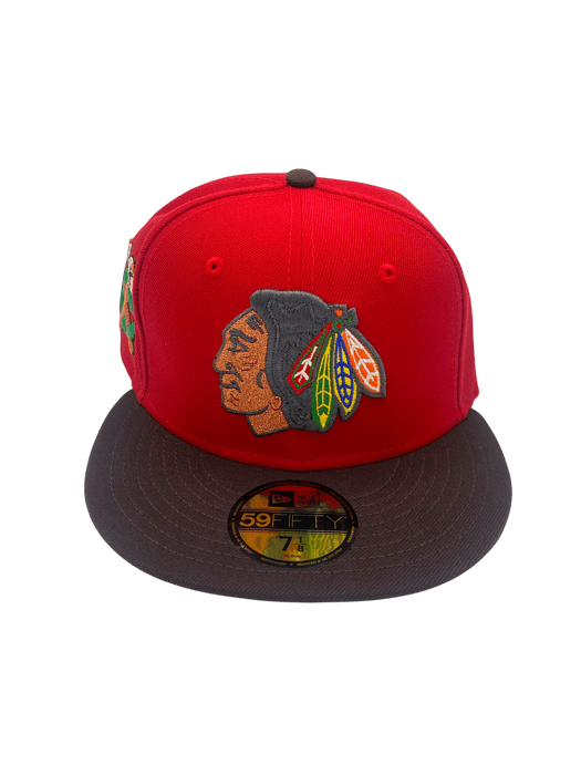 Adult Chicago Blackhawks New Era Red/Brown Classic Custom Side Patch 59FIFTY Fitted Hat - Men's