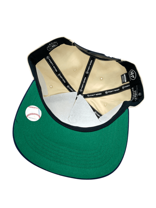 This snapback is perfect for die-hard fans. This vintage-style cap provides the perfect way to show your team spirit.  The team logo hitch hat provides an adjustable strap, embroidered logo and slightly curved bill. Cream crown with navy bill.