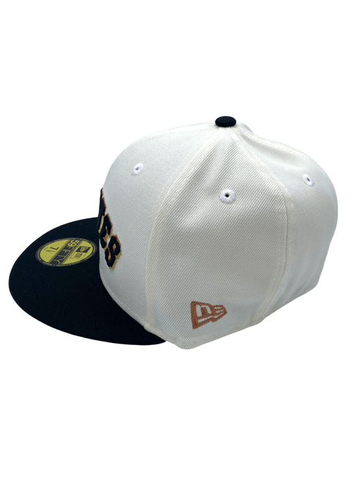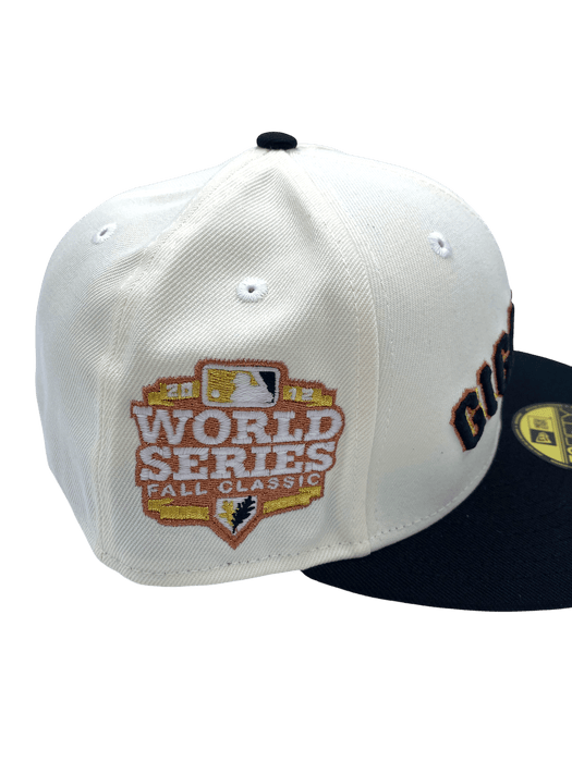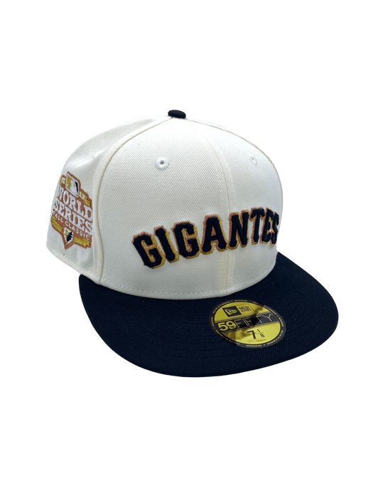 Represent your San Francisco Giants with this exclusive Hispanic heritage drop. This New Era Men's 59FIFTY fitted hat a must have. Features chrome crown, black bill, embroidered logos and gray undervisor. Also has embroidered side patch of 2012 World Series title. Gigantes in Spanish translates to Giants in English. Add this sweet piece to your collection today.